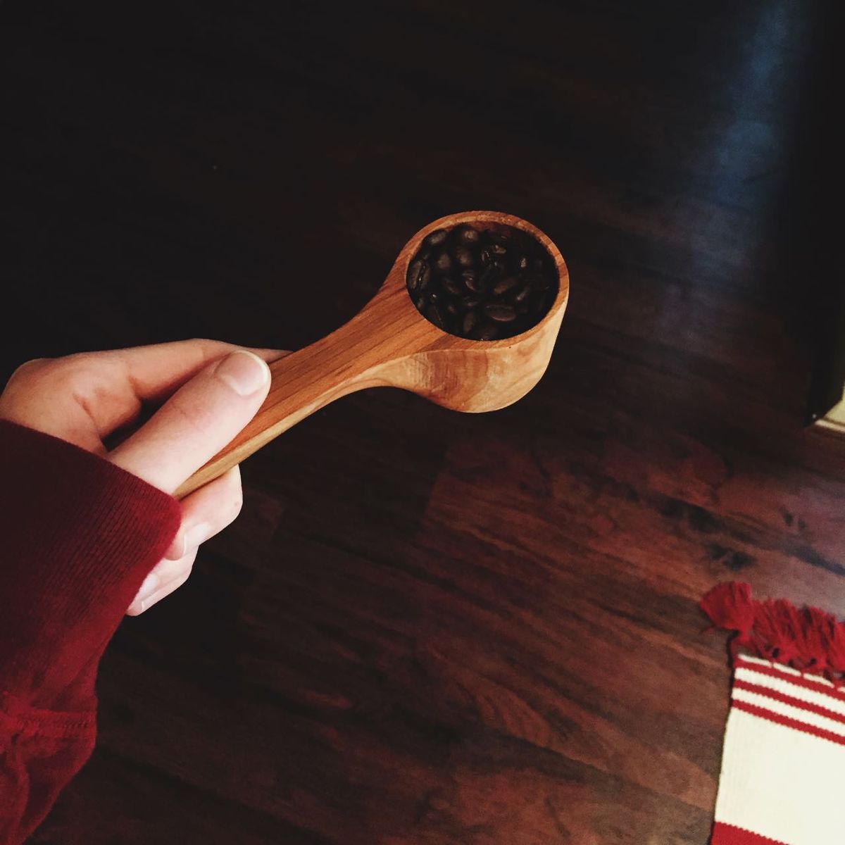 6. The hand-carved wooden scoop my mom gave me for Christmas is not only beautiful, but two scant scoops is the perfect amount of coffee beans needed to make a French press.