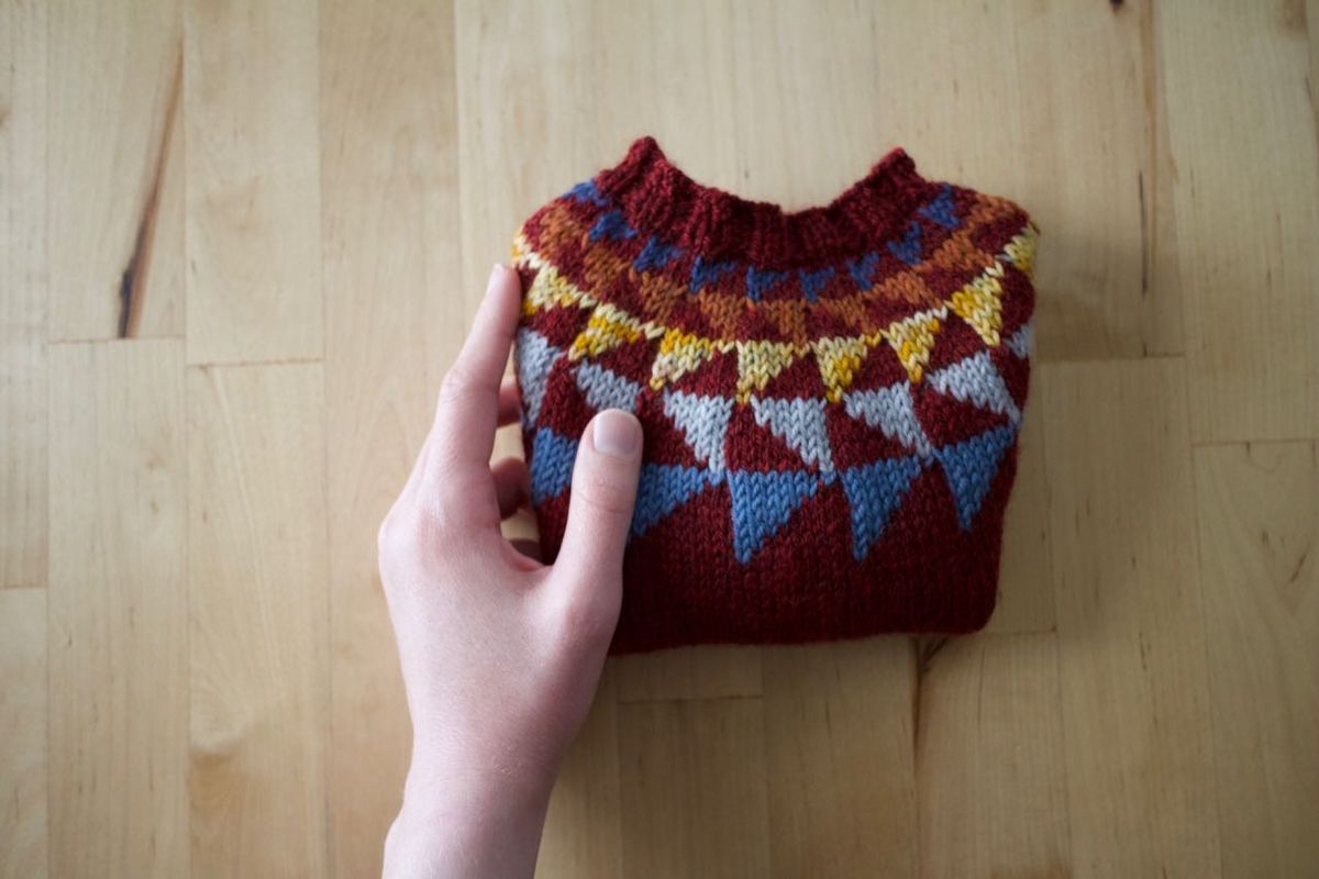 All that said, I would definitely knit a colorwork sweater for an infant again. Nicholas and I couldn't stop commenting on just how tiny and cute it was, especially compared to an adult hand, or when it was folded, oh my goodness.