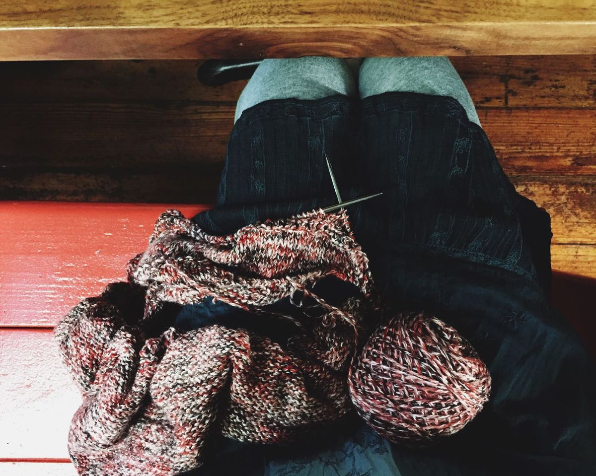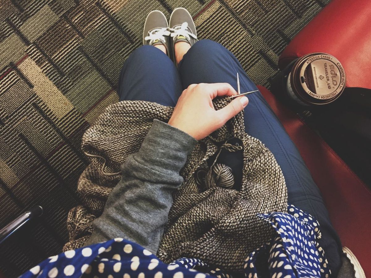 Why travel with knitting? It's productive and engaging. Plus, It allows me to be occupied without closing myself off from the world (see above paragraph about being interruptible). Basically, I'm not bored, but I'm not avoiding the world by being engrossed in my phone or headphones. There's nothing wrong with that choice of activities, but I don't like to wear headphones for long periods of time, and goodness knows I already spend too much time on my phone.