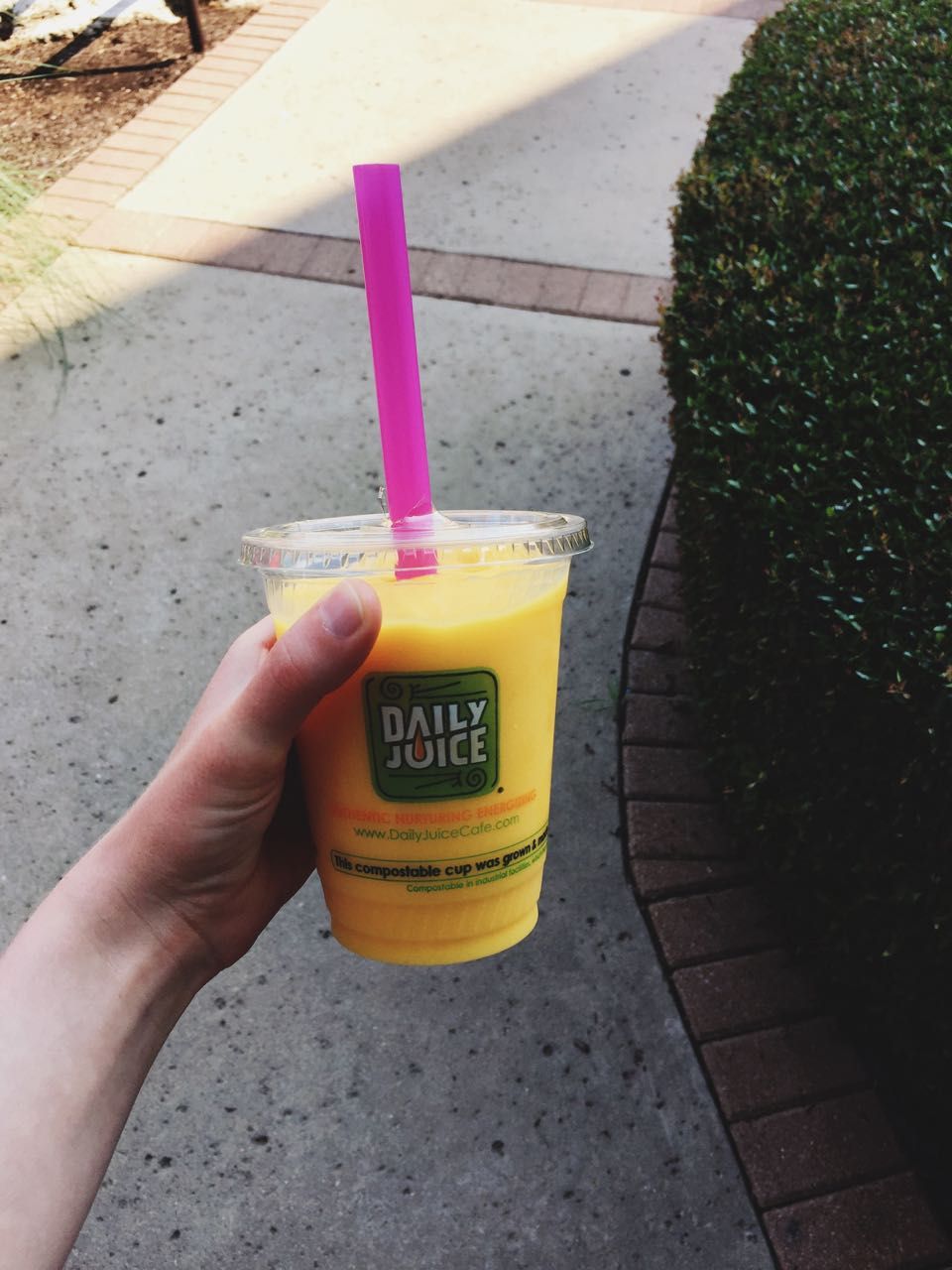 - A smoothie date after the walk. This time, we got an orange + peach + mango smoothie to share.
