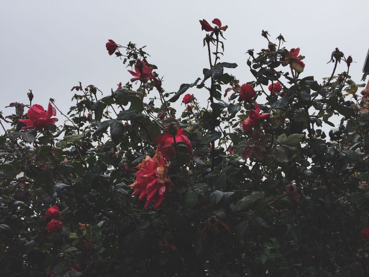 - Dreary, misting skies made happier with the brightest pink roses.