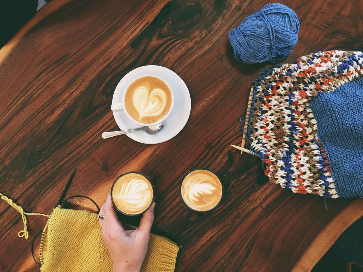 - Cortados, mindless knitting, mindful conversations.