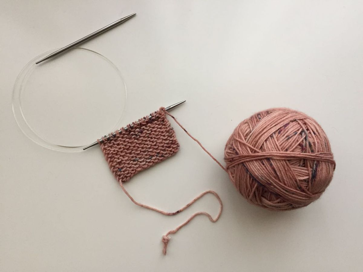Two new knitting projects! Pictured is my special skein of yarn from Woolberry Fiber Co in a swatch for a cowl.