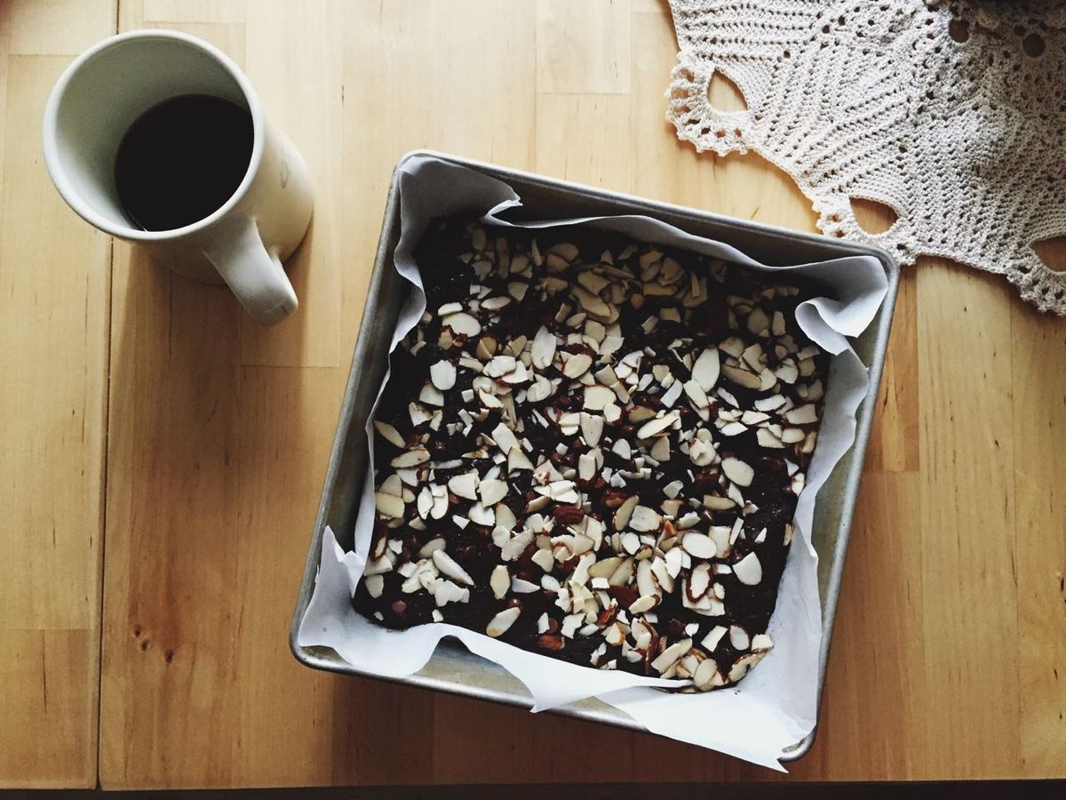 - Speaking of which, I did just make a pan of brownies, just because, so maybe that counts as a belated blog-iversary commemoration. Summer's is our favorite recipe, plus mini chocolate chips and sliced almonds sprinkled on top. I also added cinnamon this time!