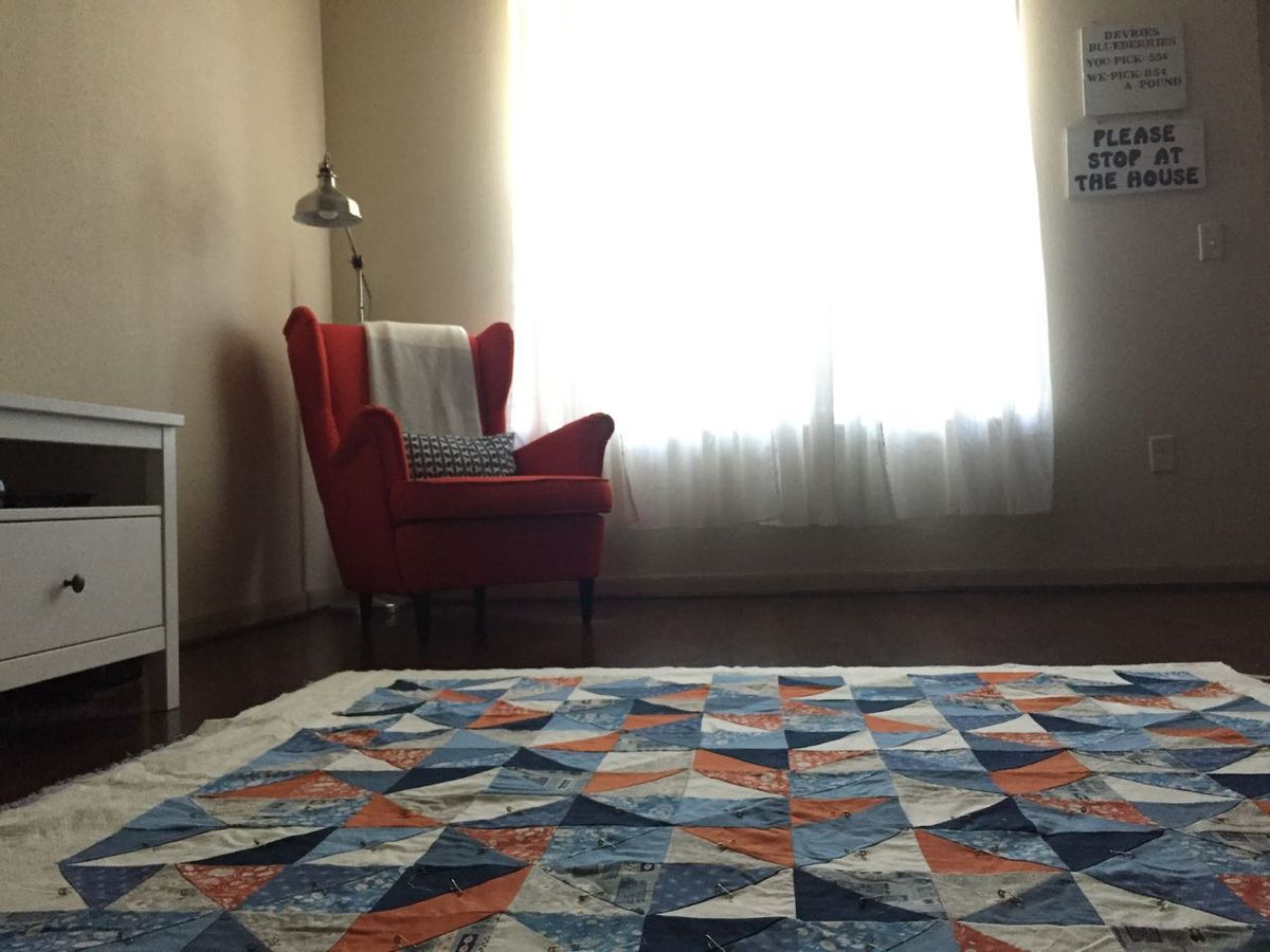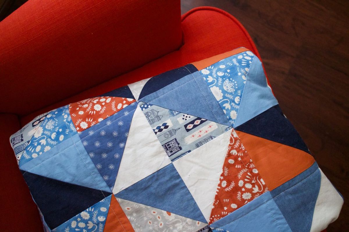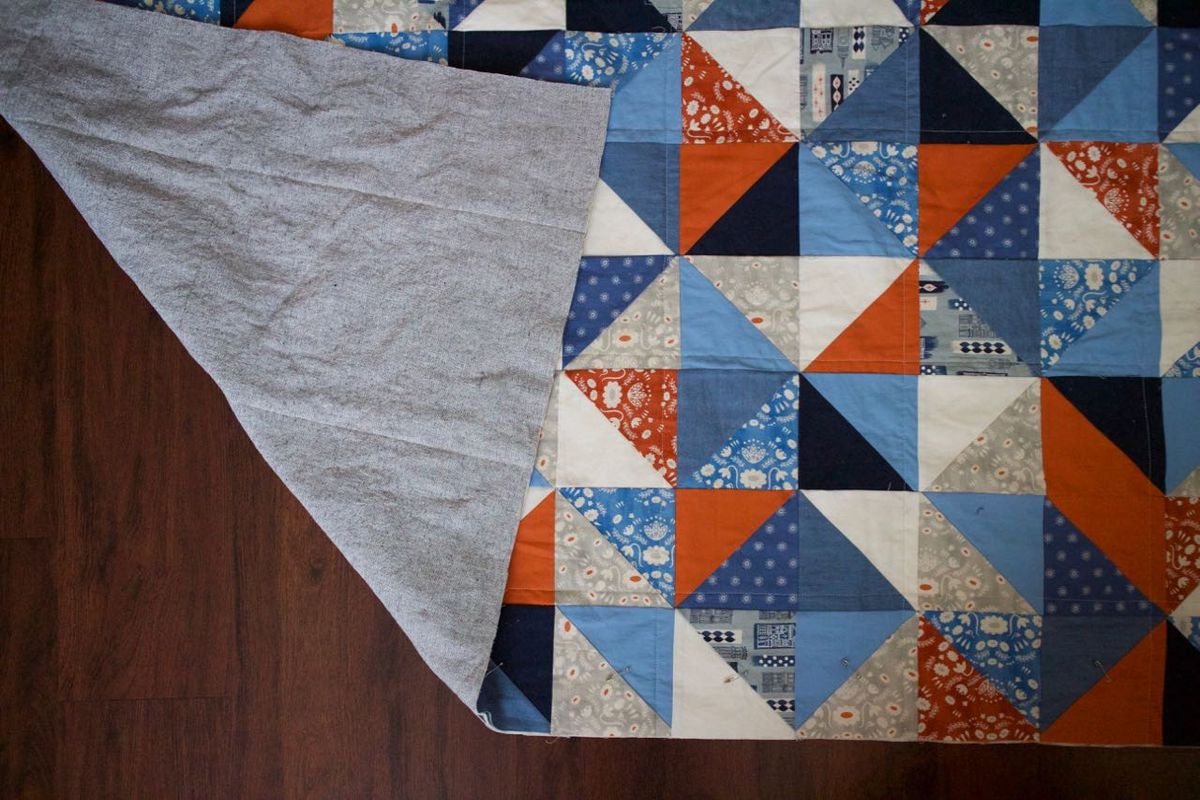 My quilt: almost done! With Nicholas' help (he's good with color and design) I decided on a linen/cotton indigo and ivory backing, and then a simple bright navy for the binding. My new walking foot arrived yesterday (my machine didn't come with one, so I ordered one compatible with my machine online) and it made machine quilting a breeze, without bunching. As in, the whole quilt top was done in less than two hours. It's amazing how everything comes together at the end of this (long, wonderful) process. Last night, I made the binding tape, and today, I'll sew it on and start hand stitching.