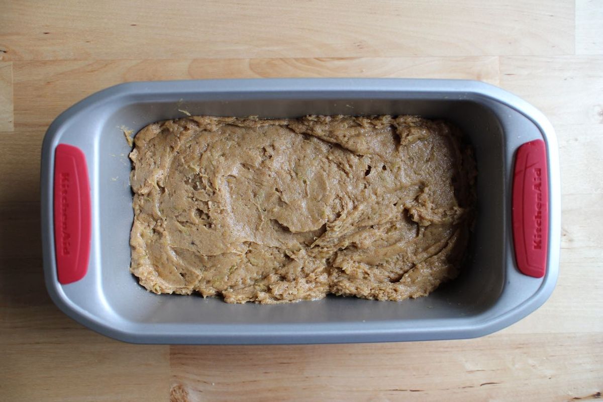 Pour batter into prepared pan and smooth the top with a spatula. The batter will be relatively thick. Bake at 350 degrees for approximately 1 hour, or until very firm to the touch. Allow to cool in the pan for 15 minutes, then transfer to a wire cooling rack.